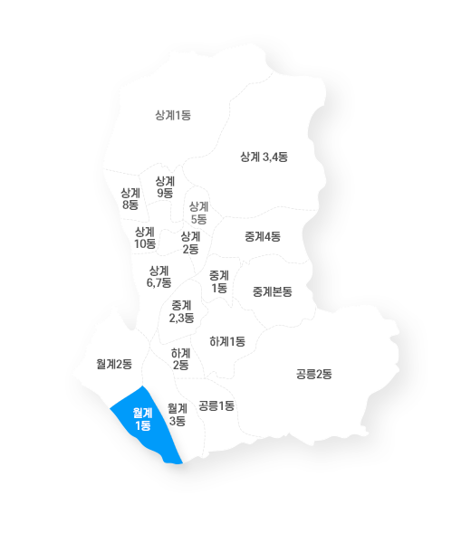 메인 본문 이전 정지 다음 배너전체보기 닫기 월계1동 주민센터 우이천이 서쪽에 위치하여 북에서 남으로 흐르고 있고지하철 1호선 및 6호선이 동서남북으로 가로지르며,향후 GTX-C노선 개통 및 광운대역세권 개발에 따른미래가치 상승률이 높은 곳입니다. 업무별 전화번호 오시는 길 공지사항 공지사항 행정상 관리 주소 이전공고 (1차) 2026.04.02 공지사항 월계1동주민센터, 월계지구대와 업무협약 체결 2026.03.13 공지사항 월계1동 평화내과, 성금 300만 원 기탁 2026.02.27 공지사항 월계1동 주민자치회 임원(부회장) 선출 변경 공고 2026.02.19 공지사항 더보기 우리구소식 우리구소식 노원아동복지관 [네모] 4월 토요프로그램 안내 2026.04.03 우리구소식 4.5.(일) 찾아가는 오케스트라 하계청솔아파트편 개최 안내 2026.04.03 우리구소식 우리아이 피부 SOS! 아토피와 여름철 피부 관리법 특강 안내 2026.04.02 우리구소식 제46회 장애인의날 기념「어울림 걷기행사」안내 2026.04.02 공지사항 더보기 고시공고 고시공고 「아동·청소년 이색레포츠 복합체험시설 음악분수대 제작 설치」 서면질의 답변(종합) 공고 2026.04.03 고시공고 도로열선시스템 CCTV 설치에 따른 행정예고 2026.04.03 고시공고 2026년 석계역 일대 간판개선사업 변경 계획 공고 2026.04.03 고시공고 자동차 검사명령 공시송달 공고 2026.04.03 고시공고 더보기 민원안내 마을변호사 전자민원창구 마을세무사 구청장에게 바란다 마을법무사 작은도서관 거주자우선주차신청 자치회관 프로그램 안내/신청 라인댄스요가탁구교실 등 강좌 바로가기 자치회관 소개 주민자치위원 강사자원봉사신청 동주민센터 한눈에 보기 월계1동 주민센터 주소 카카오맵 바로가기 홈페이지 바로가기 월계1동 월계1동 월계2동 월계3동 공릉1동 공릉2동 하계1동 하계2동 중계본동 중계1동 중계2,3동 중계4동 상계1동 상계2동 상계3,4동 상계5동 상계6,7동 상계8동 상계9동 상계10동