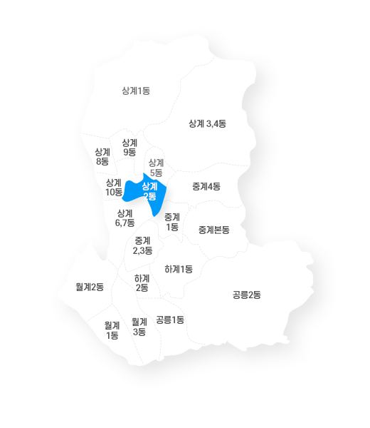 메인 본문 이전 정지 다음 배너전체보기 닫기 상계2동 주민센터 지하철 4,7호선 노원역이 위치하고, 일반주택과 소규모 아파트단지가 혼재되어 있는 주거지역과 노원역 주변의 문화의 거리를 중심으로한 상업지역이 형성되어 있는 지역입니다. 업무별 전화번호 오시는 길 공지사항 공지사항 주민등록 신고의무 지연 직권조치 결과 공고 2026.04.01 공지사항 주민등록 신고의무 지연자 최고공고 2026.04.01 공지사항 지역 주민 마음건강 평가 추진 2026.03.27 공지사항 거주불명등록 이전 직권조치 결과 공고문 2026.03.25 공지사항 더보기 우리구소식 우리구소식 노원아동복지관 [네모] 4월 토요프로그램 안내 2026.04.03 우리구소식 4.5.(일) 찾아가는 오케스트라 하계청솔아파트편 개최 안내 2026.04.03 우리구소식 우리아이 피부 SOS! 아토피와 여름철 피부 관리법 특강 안내 2026.04.02 우리구소식 제46회 장애인의날 기념「어울림 걷기행사」안내 2026.04.02 공지사항 더보기 고시공고 고시공고 「아동·청소년 이색레포츠 복합체험시설 음악분수대 제작 설치」 서면질의 답변(종합) 공고 2026.04.03 고시공고 도로열선시스템 CCTV 설치에 따른 행정예고 2026.04.03 고시공고 2026년 석계역 일대 간판개선사업 변경 계획 공고 2026.04.03 고시공고 자동차 검사명령 공시송달 공고 2026.04.03 고시공고 더보기 민원안내 마을변호사 전자민원창구 마을세무사 구청장에게 바란다 마을법무사 작은도서관 거주자우선주차신청 자치회관 프로그램 안내/신청 라인댄스요가탁구교실 등 강좌 바로가기 자치회관 소개 주민자치위원 강사자원봉사신청 동주민센터 한눈에 보기 상계2동 주민센터 주소 카카오맵 바로가기 홈페이지 바로가기 상계2동 월계1동 월계2동 월계3동 공릉1동 공릉2동 하계1동 하계2동 중계본동 중계1동 중계2,3동 중계4동 상계1동 상계2동 상계3,4동 상계5동 상계6,7동 상계8동 상계9동 상계10동