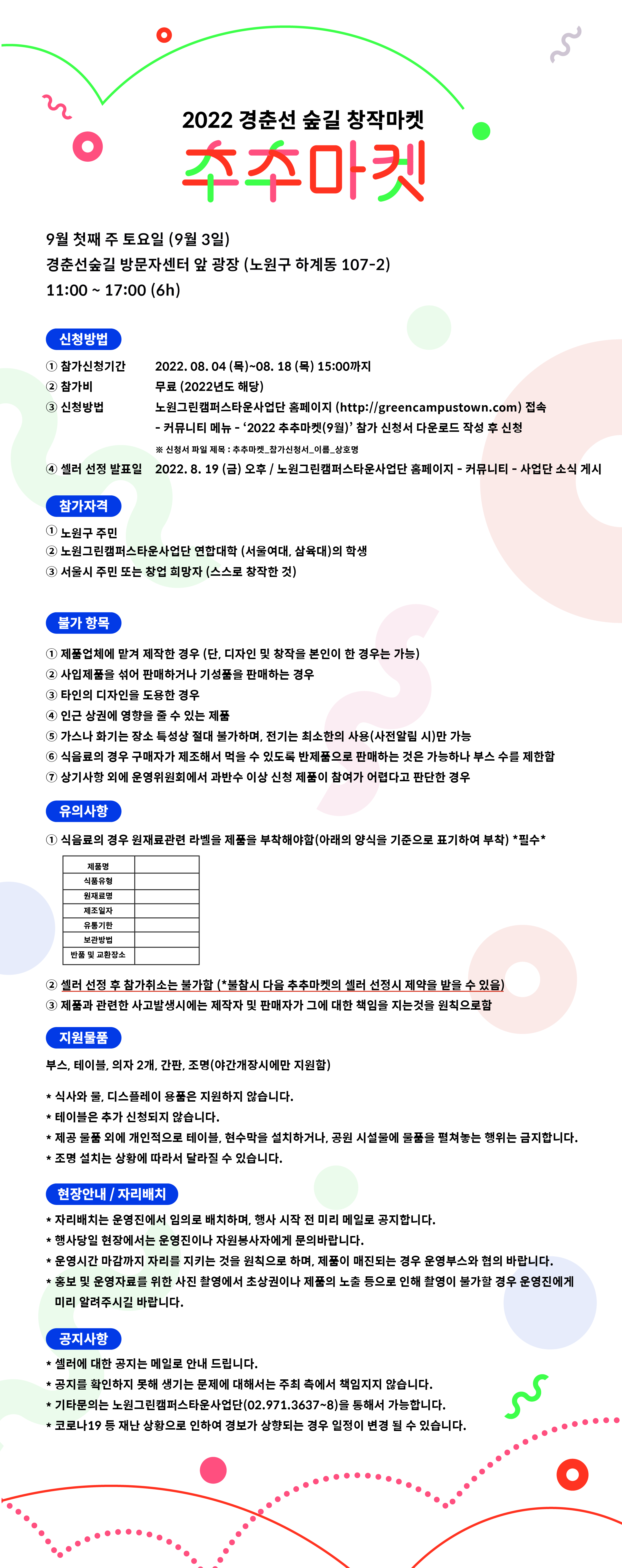 경춘선 숲길 프리(추추)마켓 행사 안내