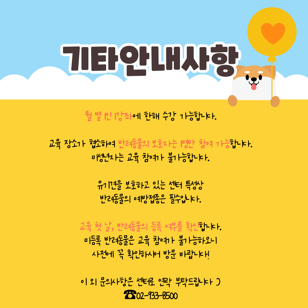 [전체공지] ★노원 반려동물문화센터「힐링하시개!댕댕하우스」5월 교육신청 안내★