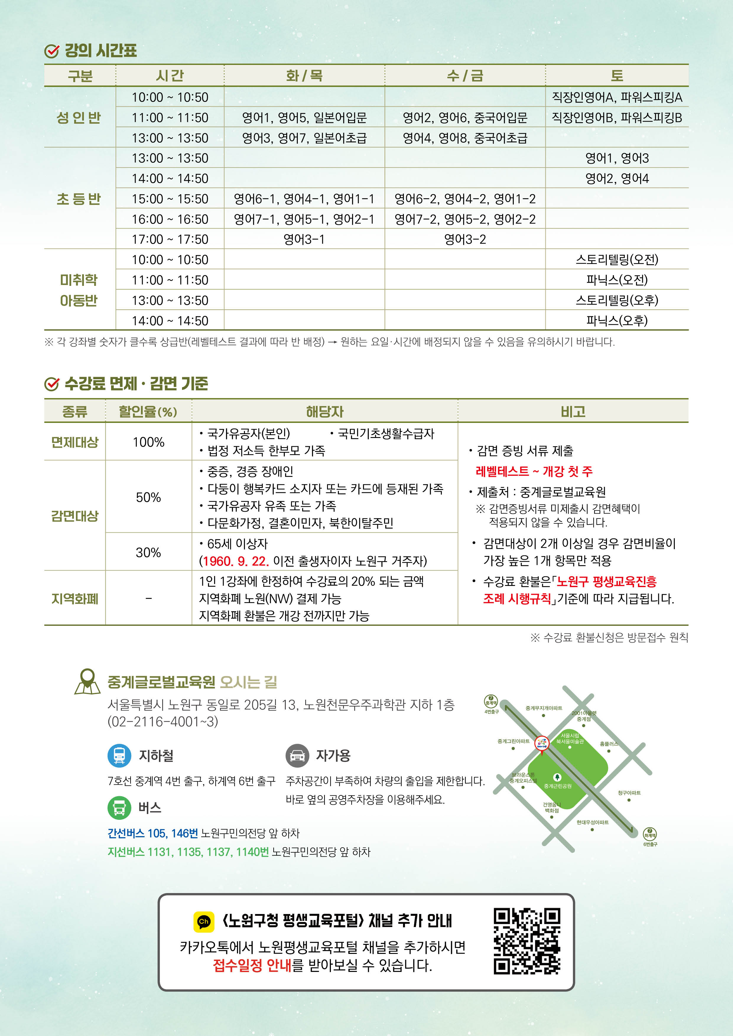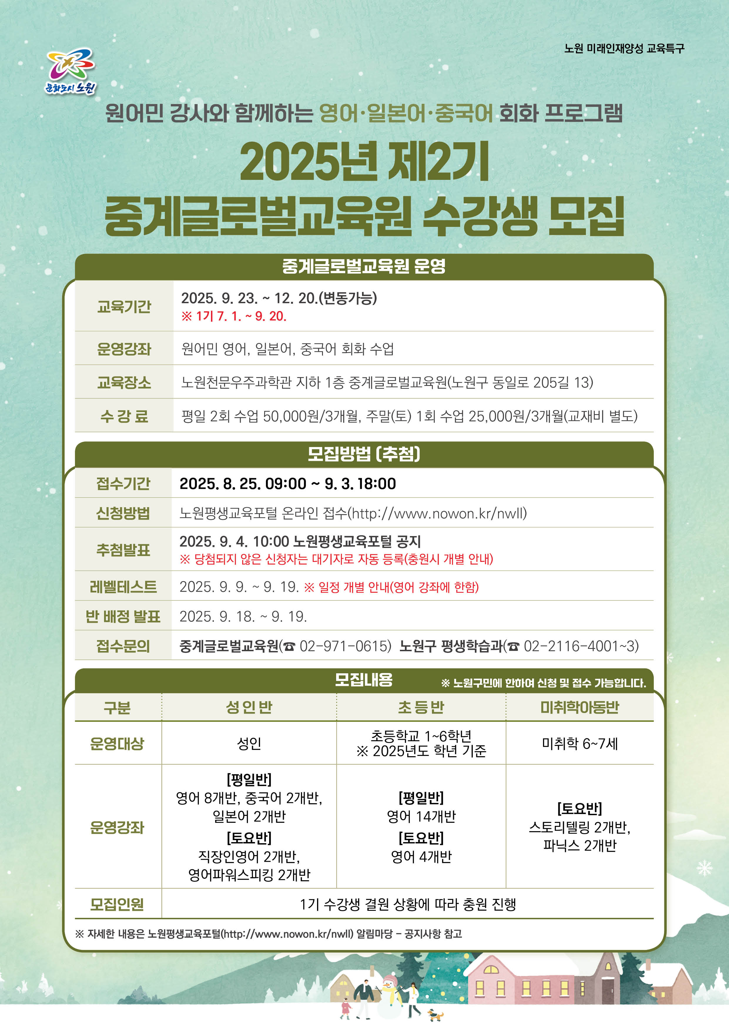 2025년 중계글로벌교육원 수강생 추가 모집(제2기)
