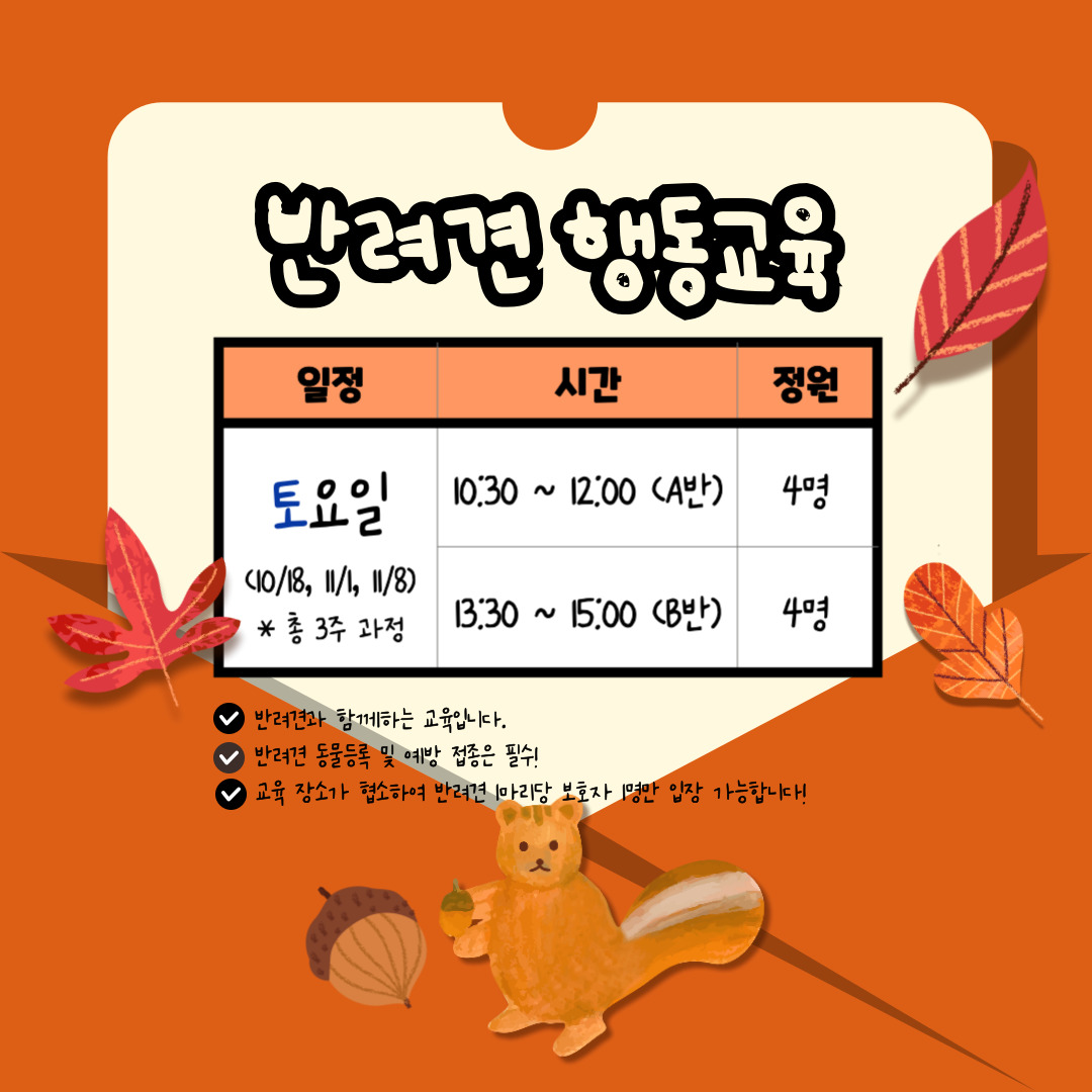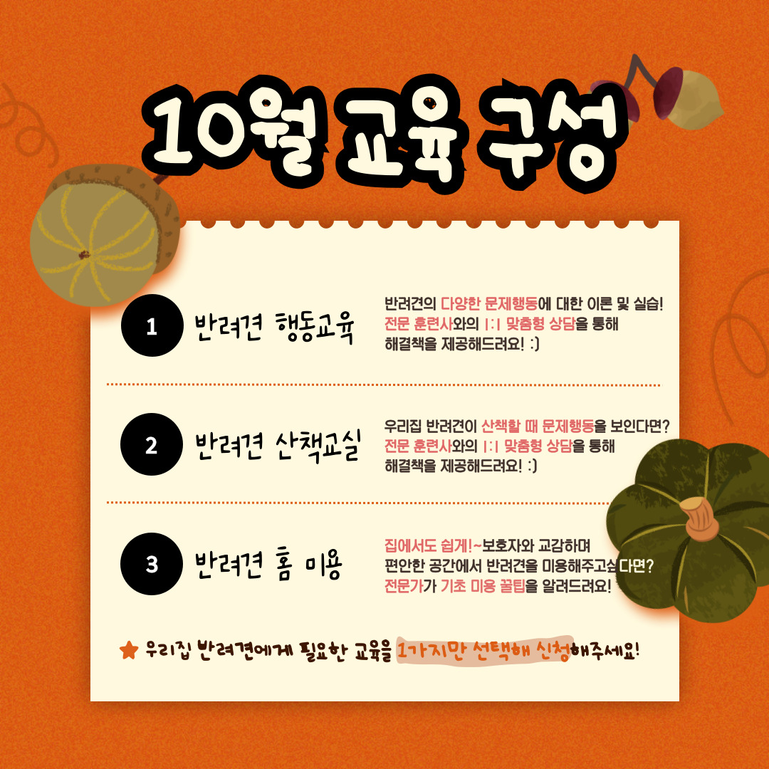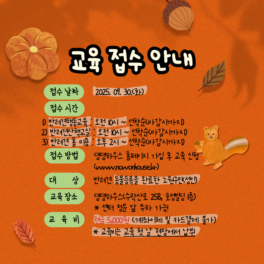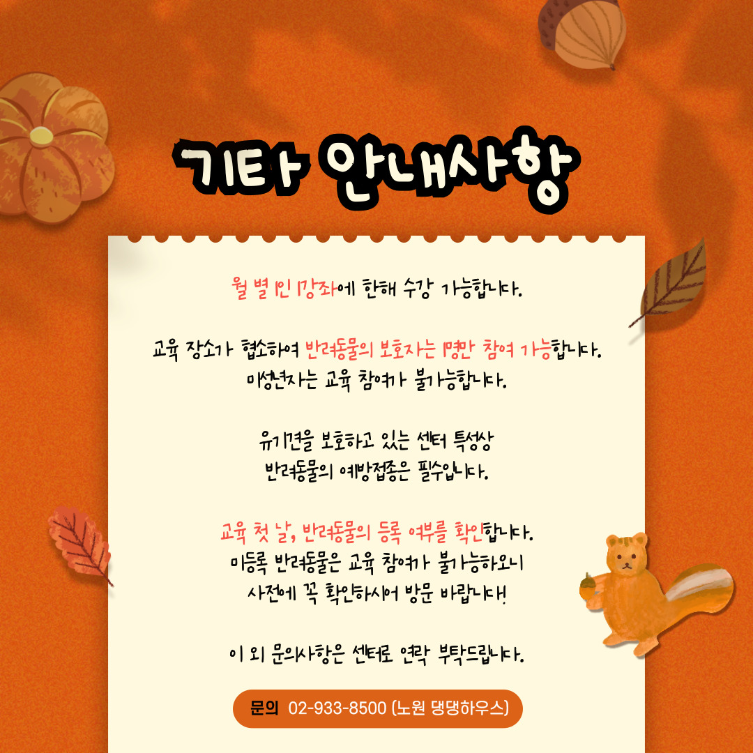 노원 반려가족 여러분들을 위한 2025년 댕댕하우스 10월 교육 안내드립니다.