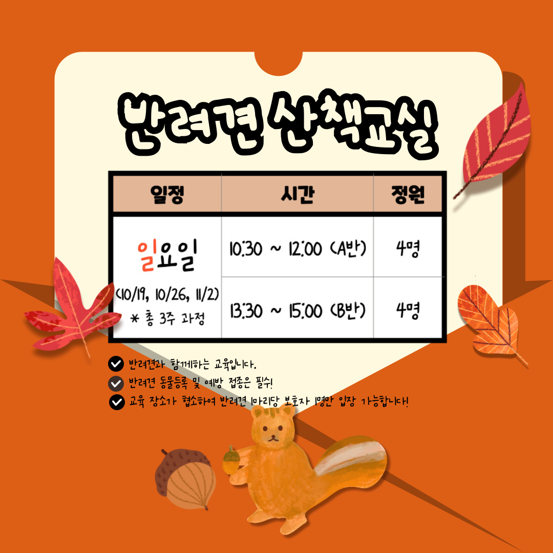 √ 반려견 산책 에티켓과 사회화 교육이 필요하신 분!