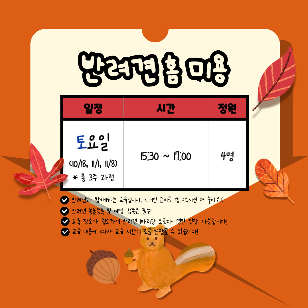 [전체공지] ★노원 반려동물문화센터「힐링하시개!댕댕하우스」10월 교육신청 안내★