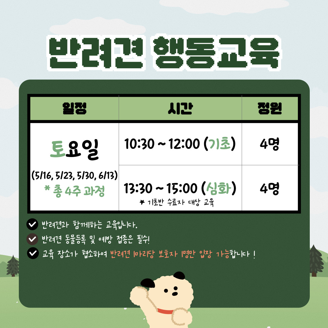 노원 반려가족 여러분들을 위한 2026년 댕댕하우스 5월 교육 안내드립니다.