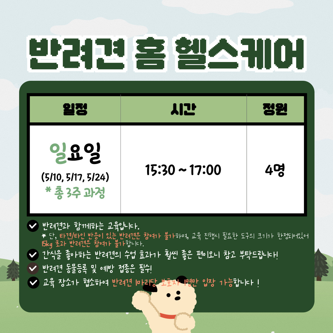 [전체공지] ★ 노원 반려동물문화센터「힐링하시개!댕댕하우스」5월 교육신청 안내 ★