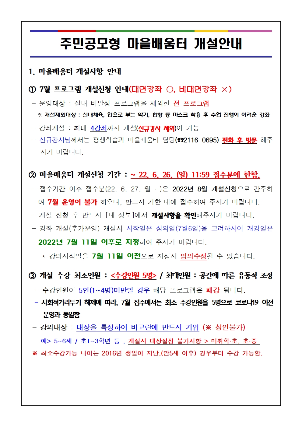 2022. 7월 주민공모형 마을배움터 개설신청 안내