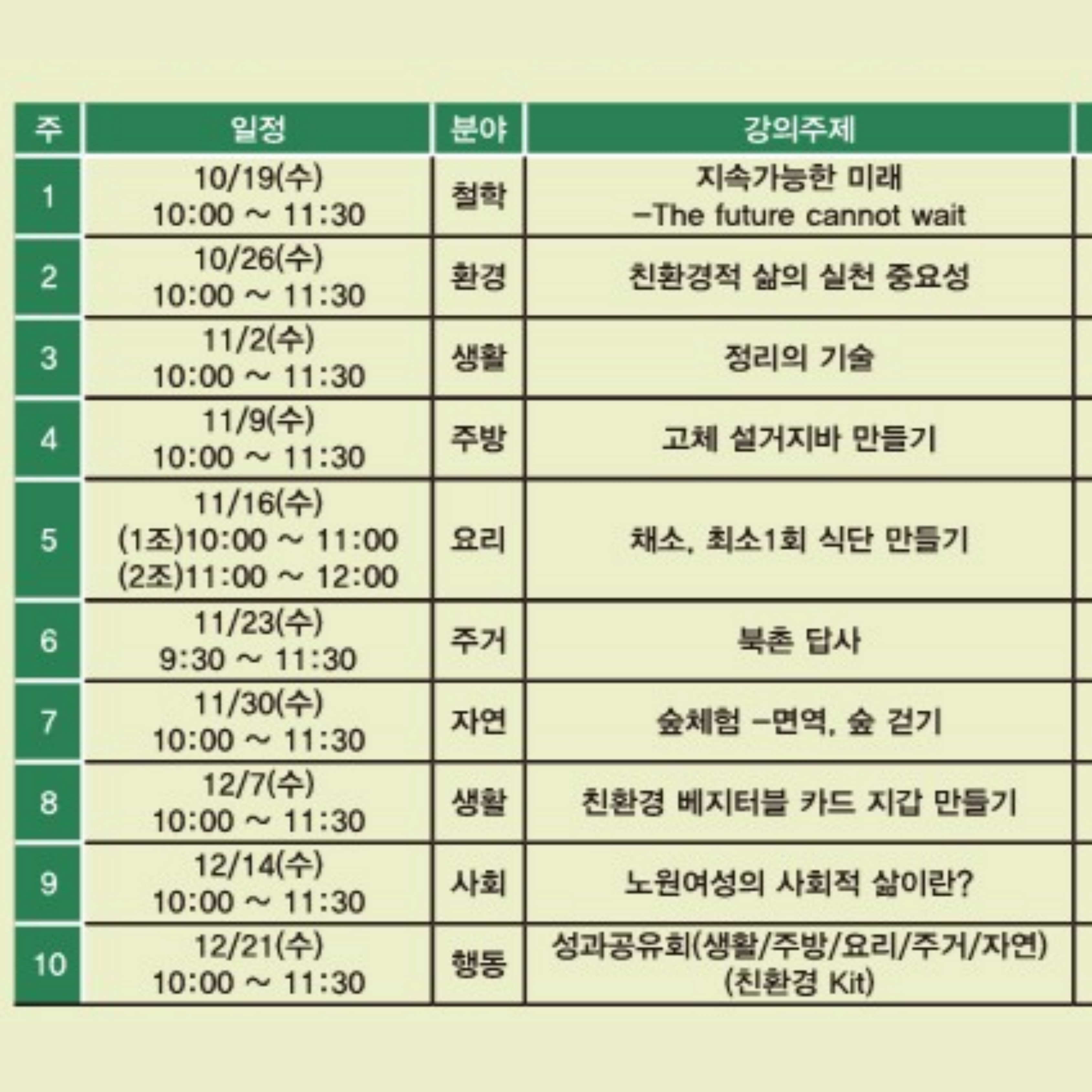 2. 교육시간 : 매주 수요일, 10:00 ~ 11:30