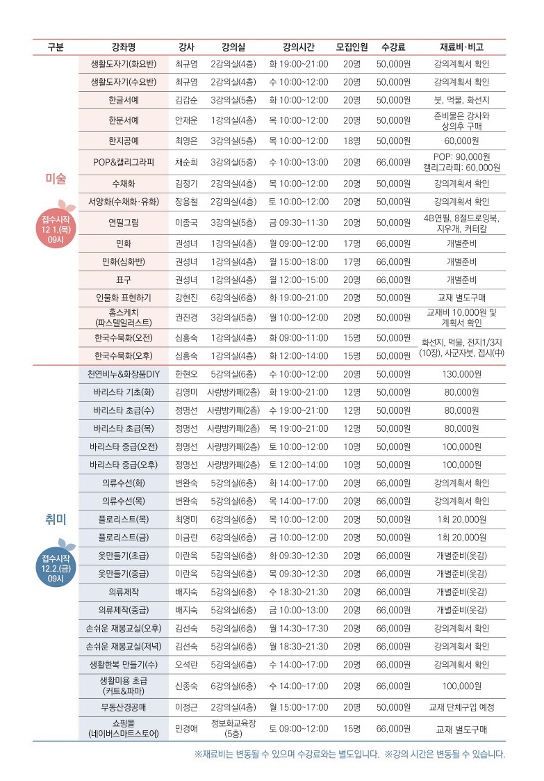 2023년 제1기 강좌 수강생 모집 안내