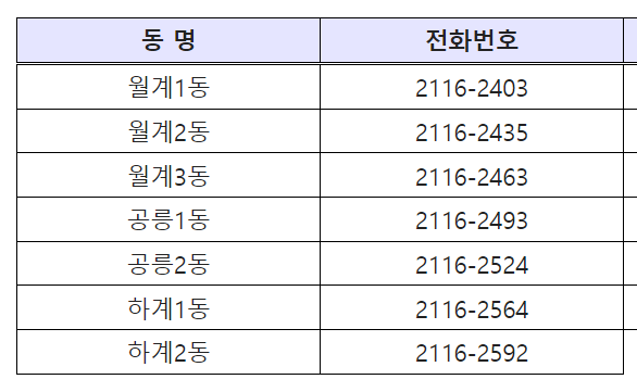 □ 동별 주민자치 담당자 전화번호 안내