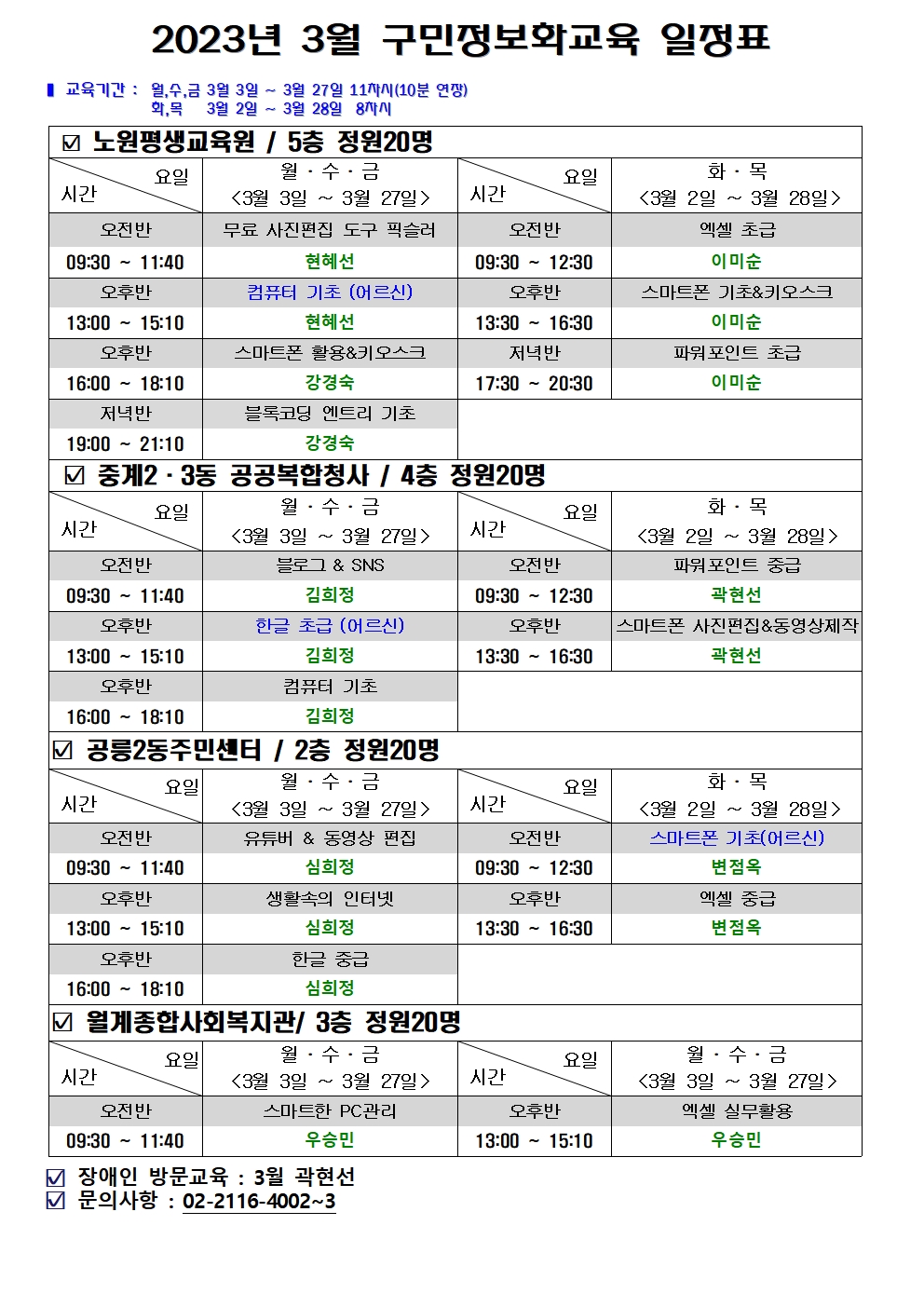 2023년 3월 구민정보화교육 일정표