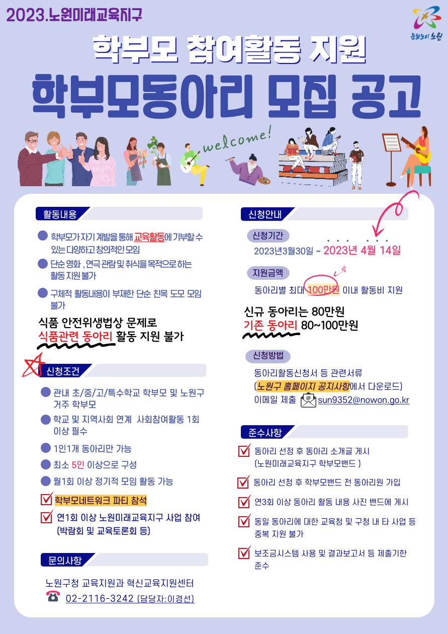 2023 노원미래교육지구(구.노원혁신교육지구) 학부모참여활동지원사업 학부모동아리 운영자 모집