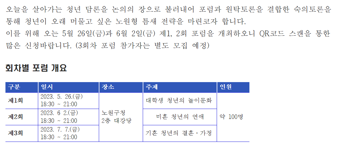 [전체공지] 청년이 머물고 싶은 노원을 위한 포럼 참가자 모집 안내