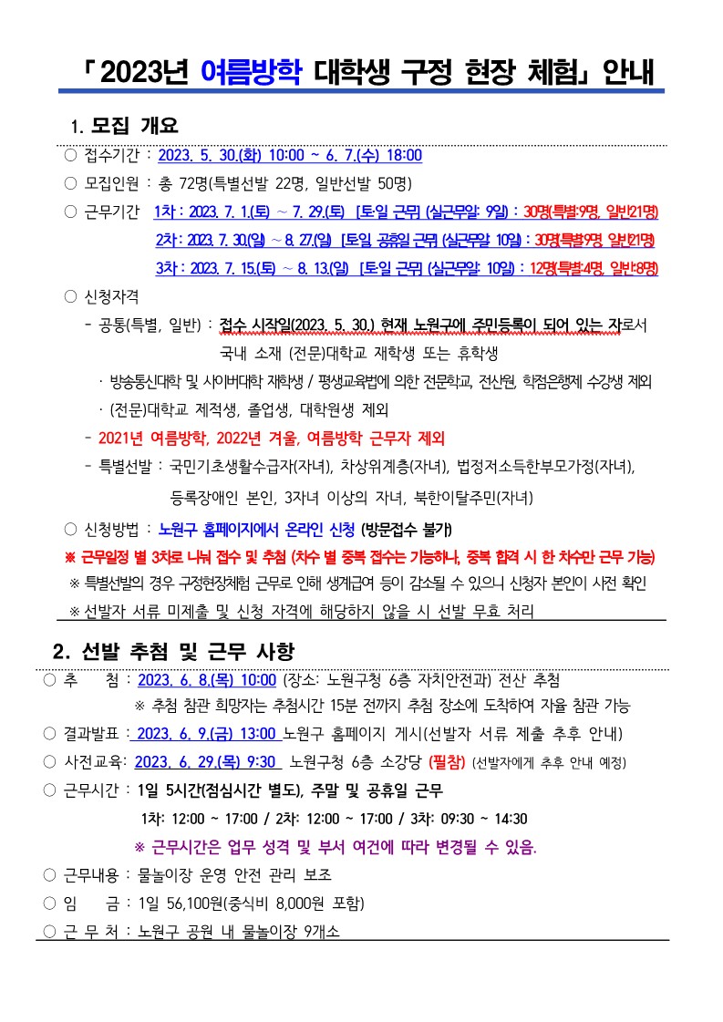 2023년 여름방학 대학생 구정 현장 체험 안내