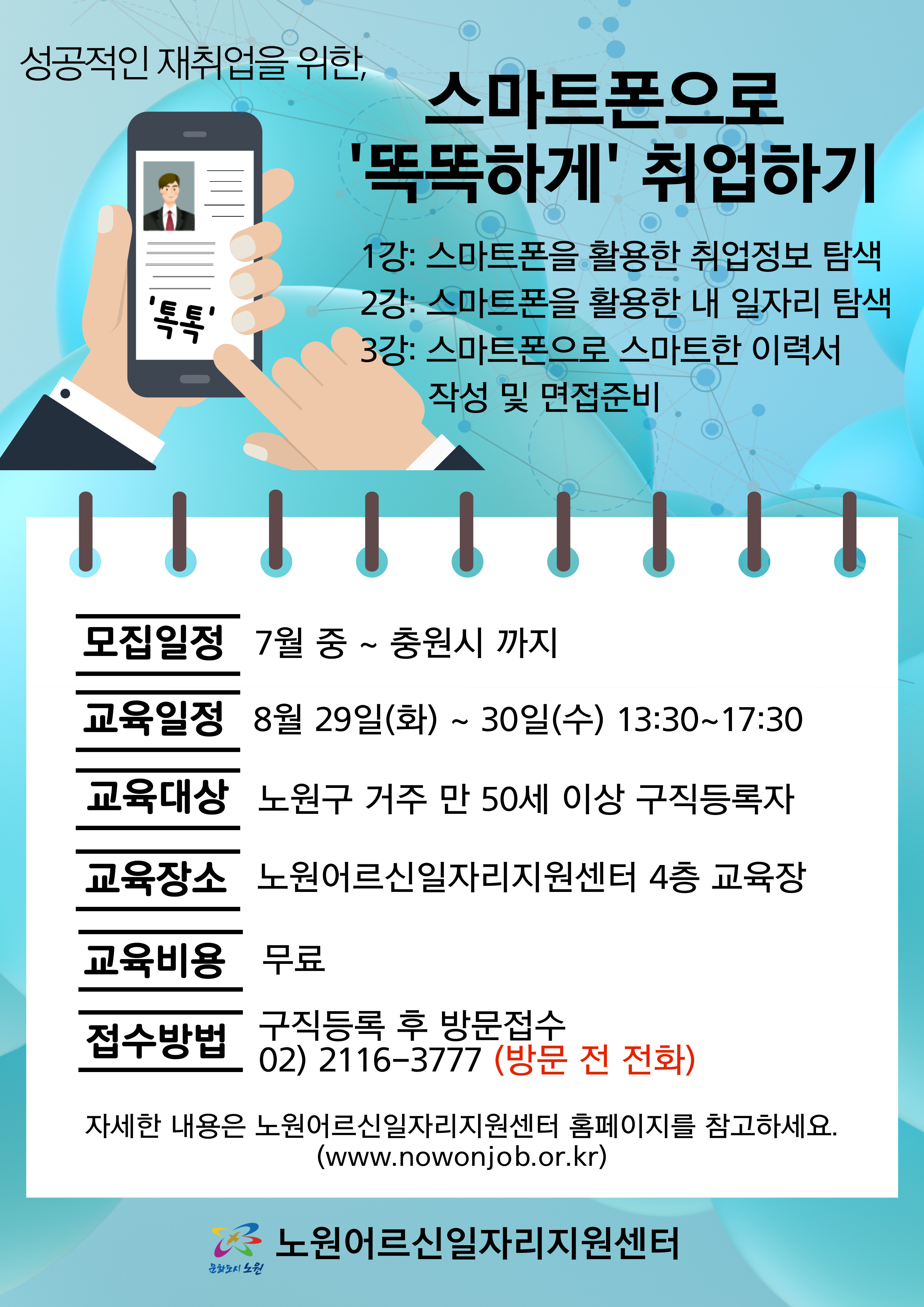 [전체공지] 재취업 준비교육 (스마트폰으로 똑똑하게 취업하기) 교육생 모집 [노원어르신일자리지원센터]