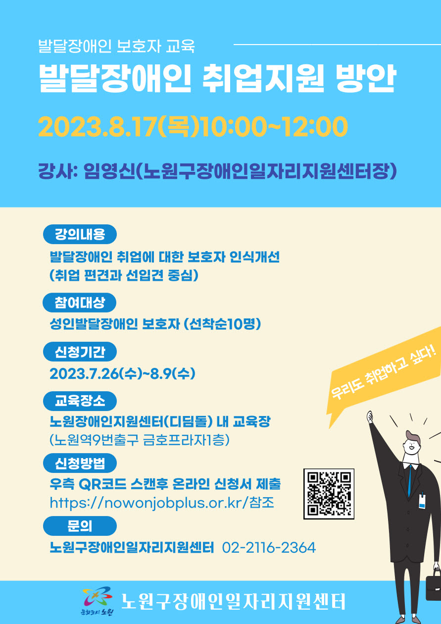 발달장애인 보호자 교육 선착순 모집(노원구장애인일자리지원센터)