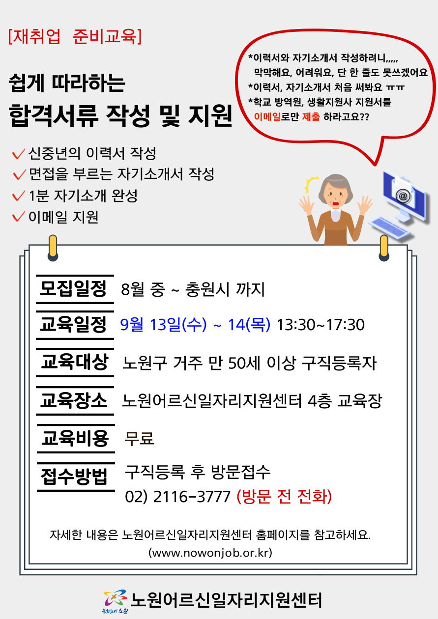 [전체공지] 도보배달원 양성 과정 교육생 모집 [노원어르신일자리지원센터]