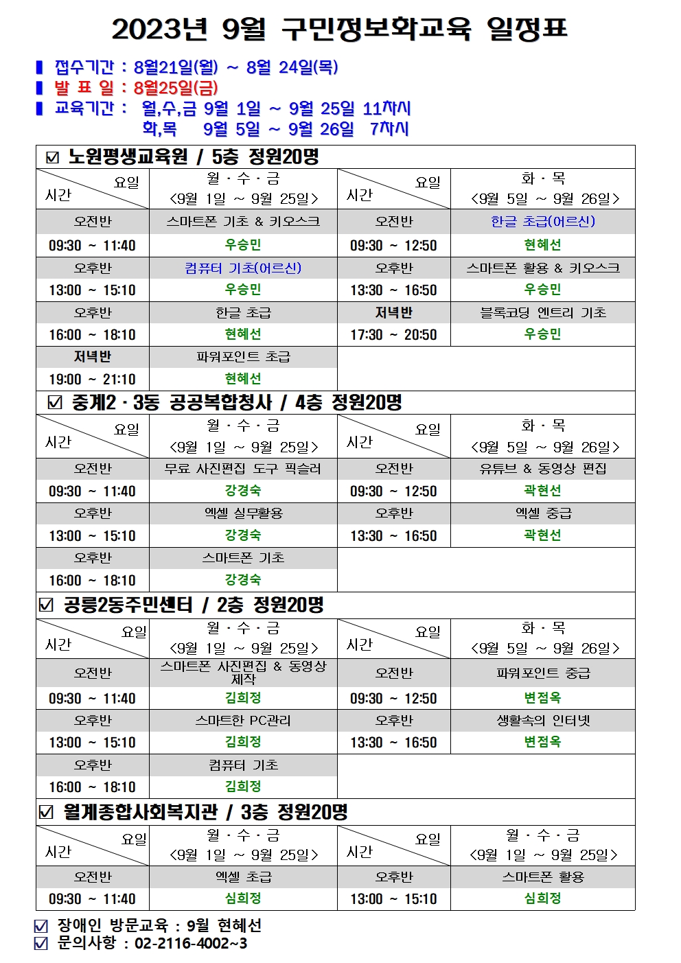 구민정보화교육 9월 수강생 모집 일정 안내
