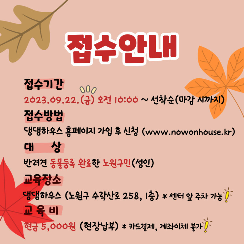 ▶ 접수방법 : 댕댕하우스 홈페이지(www.nowonhouse.kr) 온라인 접수