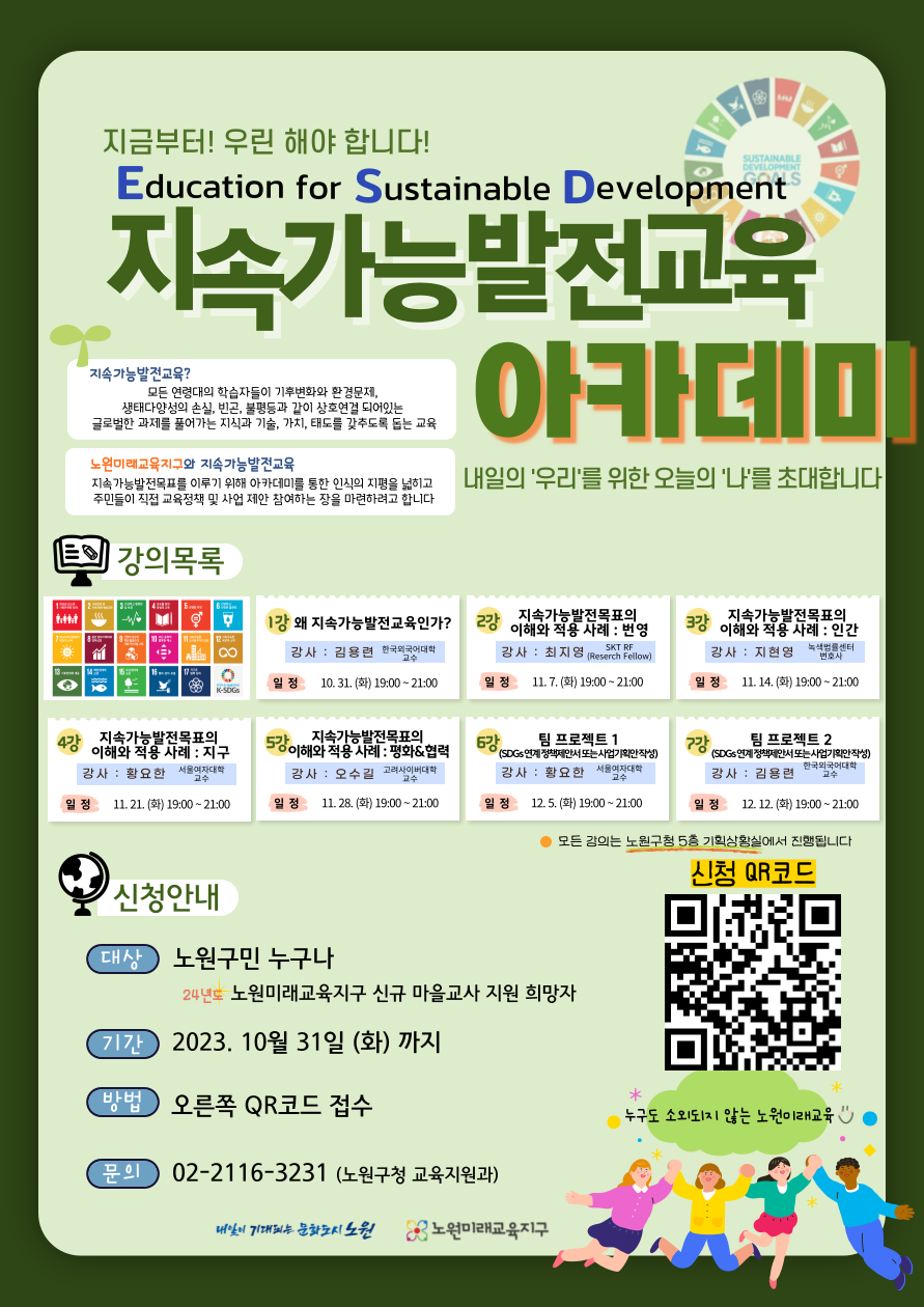 노원미래교육지구 지속가능발전교육 아카데미 신청 안내