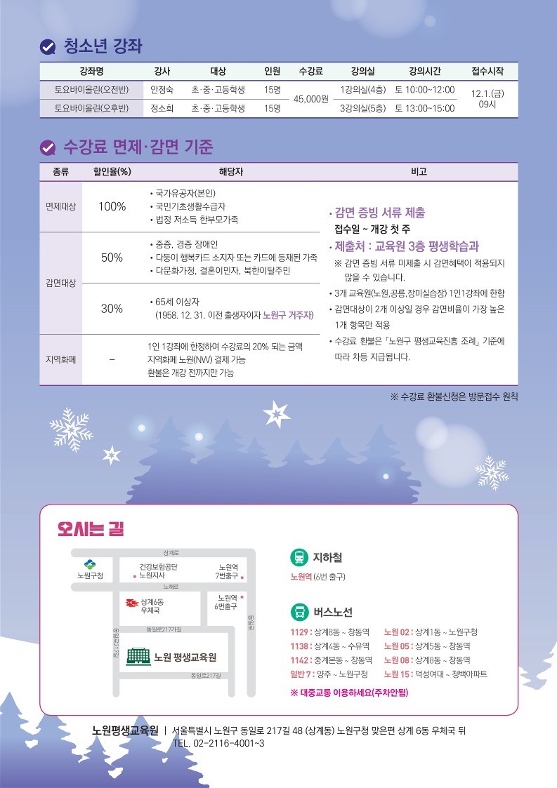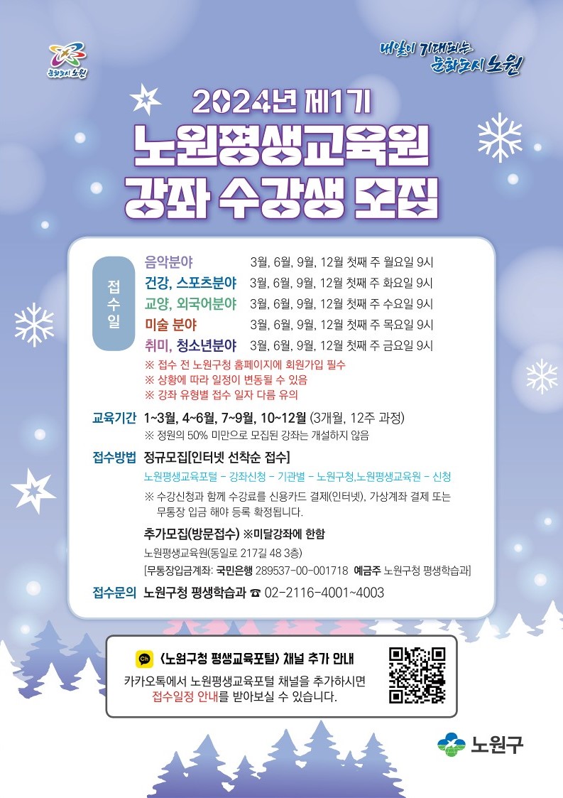 2024년 1분기 자치회관 프로그램 접수일정 안내