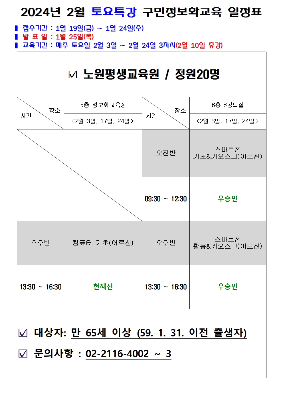 [구민정보화교육] 2024년 2월 구민정보화교육 수강생 모집 일정 안내