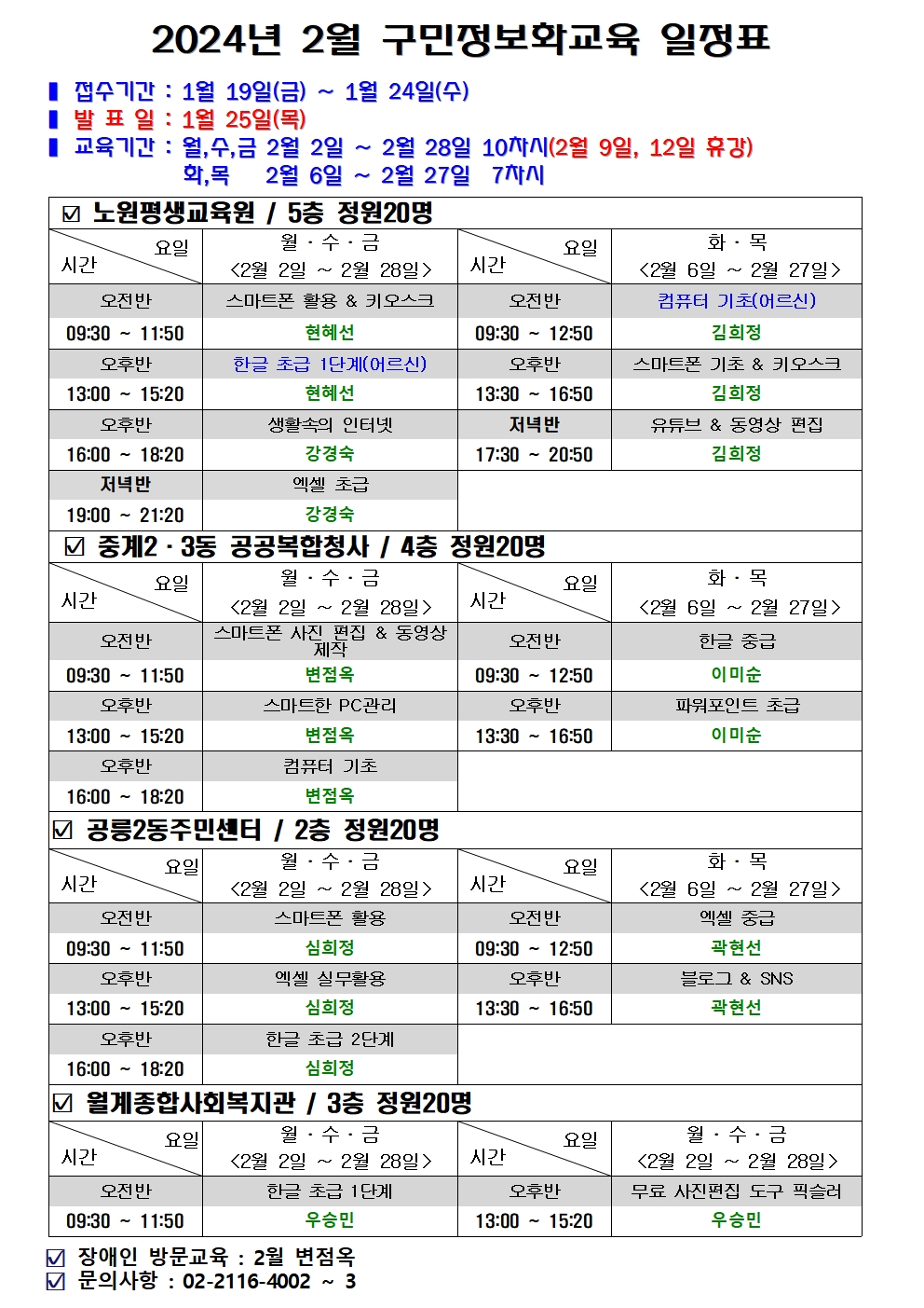 2024년 2월 구민정보화교육 수강생 모집 일정 안내