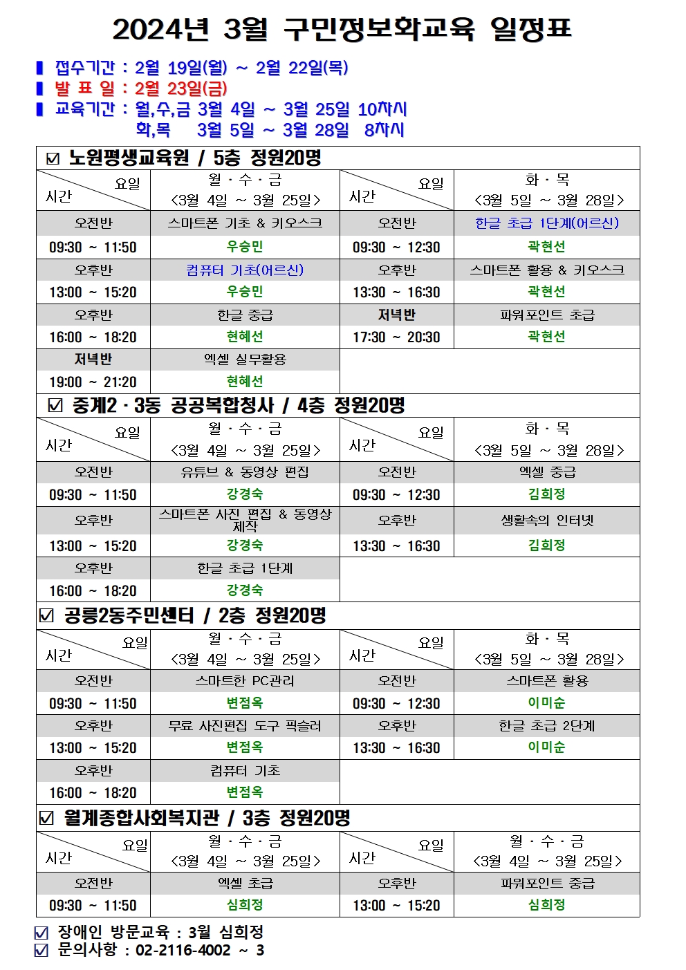 2024년 3월 구민정보화교육 일정표