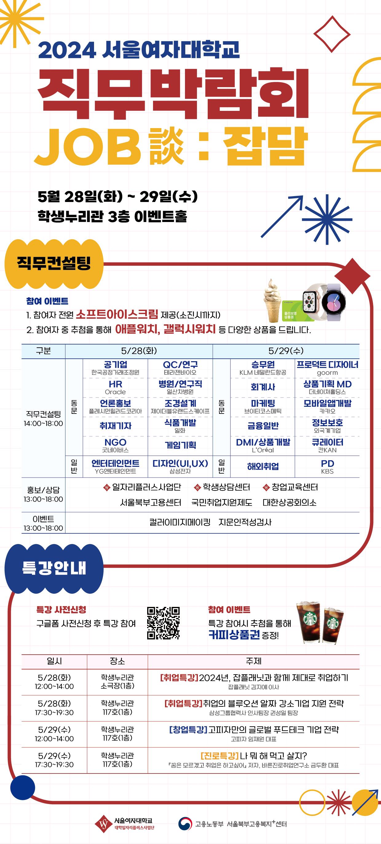 2024년 서울여자대학교 직무박람회 JOB談(잡담)에 초대합니다~!