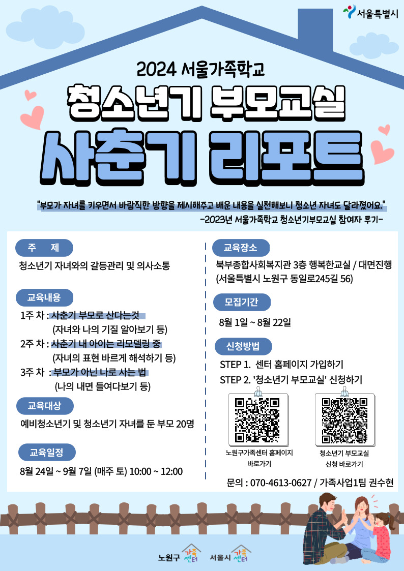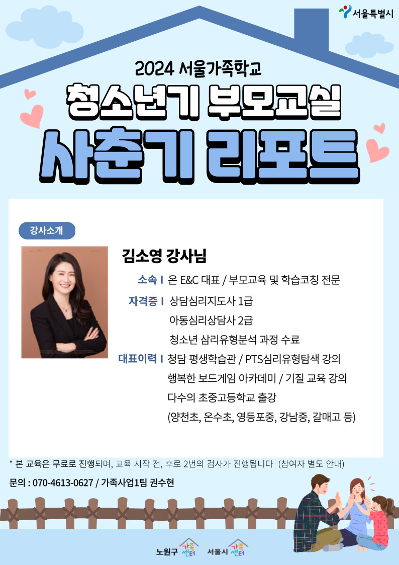 [노원구가족센터] 청소년기 부모교실 '사춘기 리포트' 참여자 모집