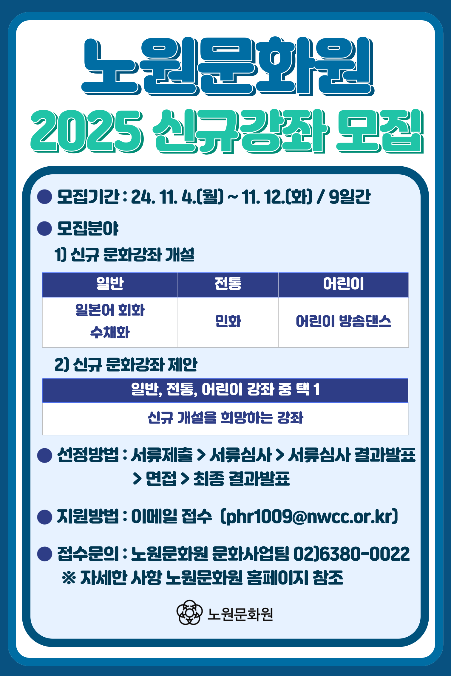 [공릉동] 2025년 1분기 노원문화원 신규문화강좌 강사 공개모집 공고