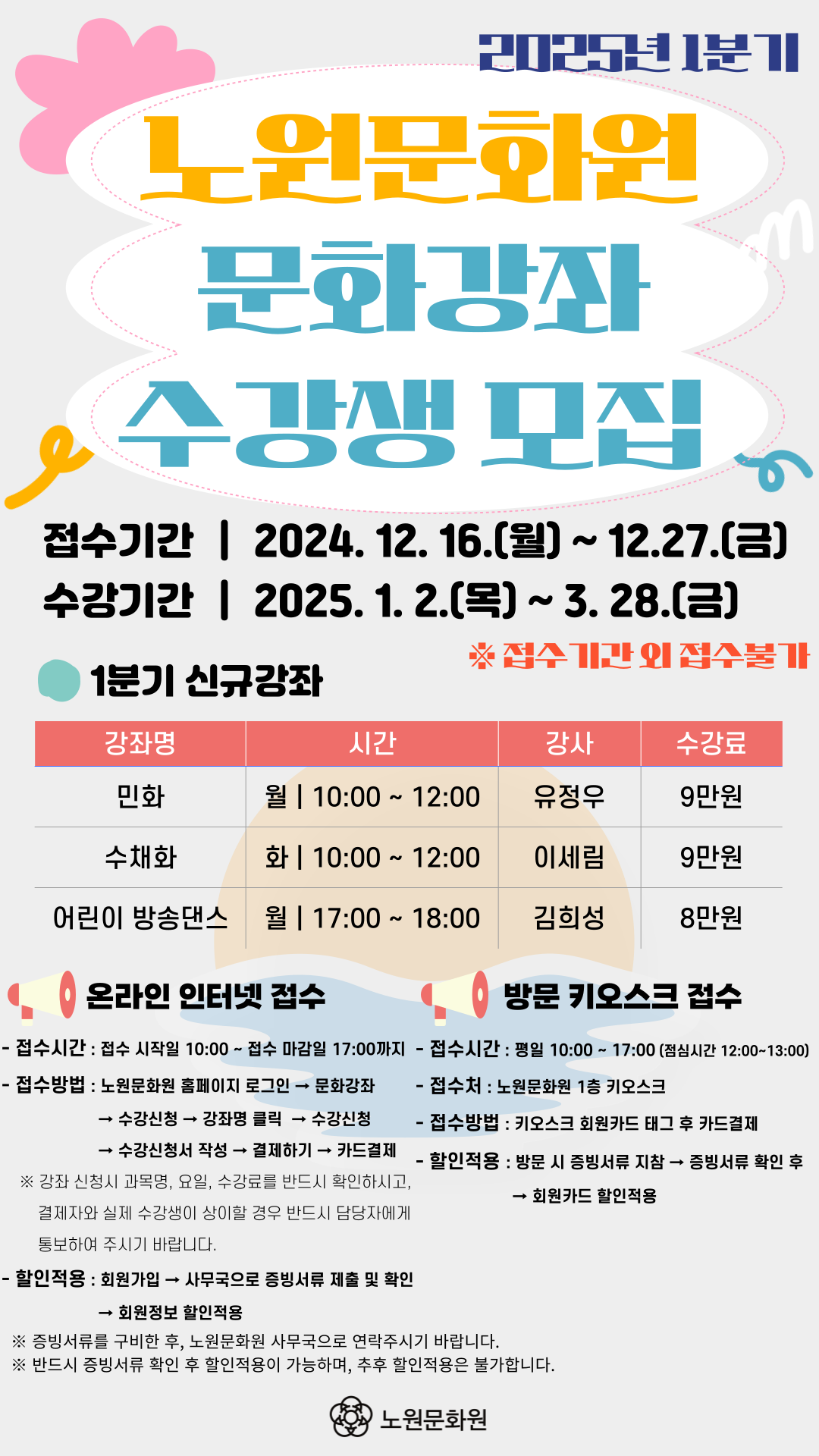[공릉동] [노원문화원] 2025 1분기 문화강좌 수강생 모집