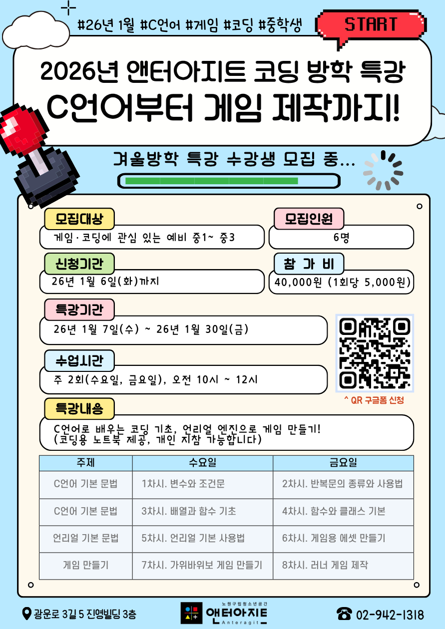 [월계동] [앤터아지트] C언어&게임 코딩 방학 특강