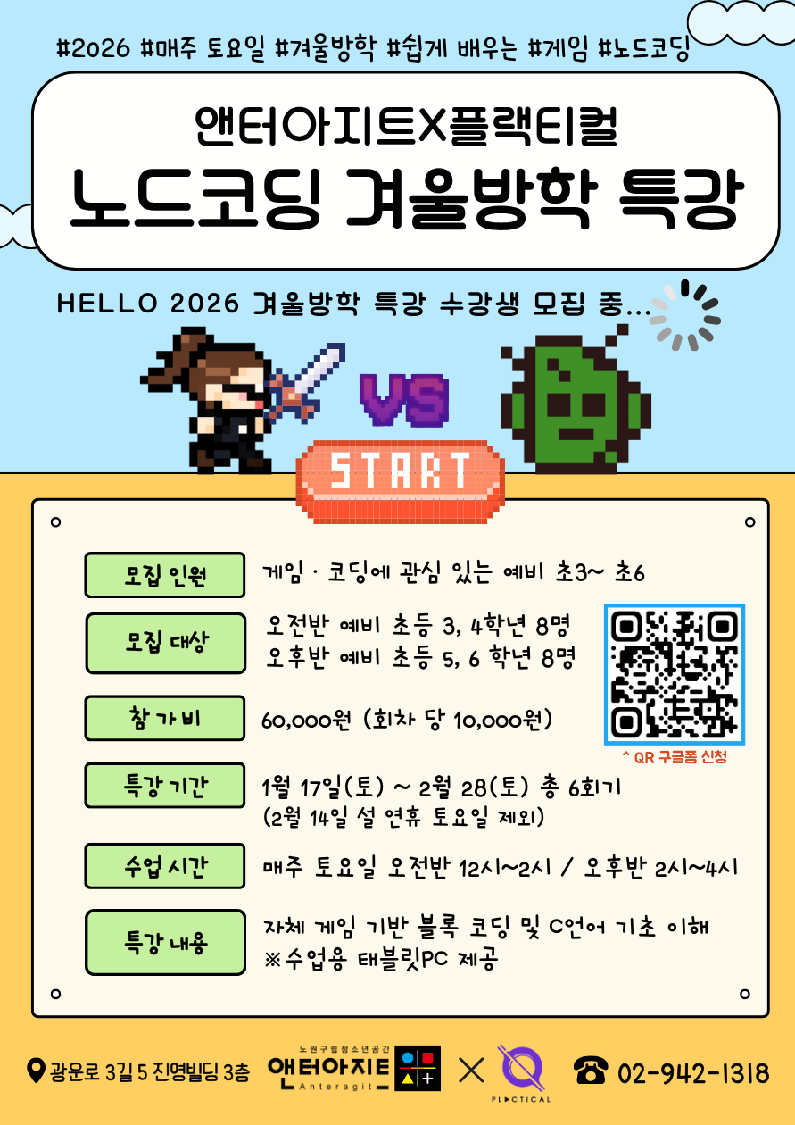 이번 방학 특강 기회를 놓치지 마시고, 앤터아지트에서 함께 성장하는 시간이 되길 바랍니다.