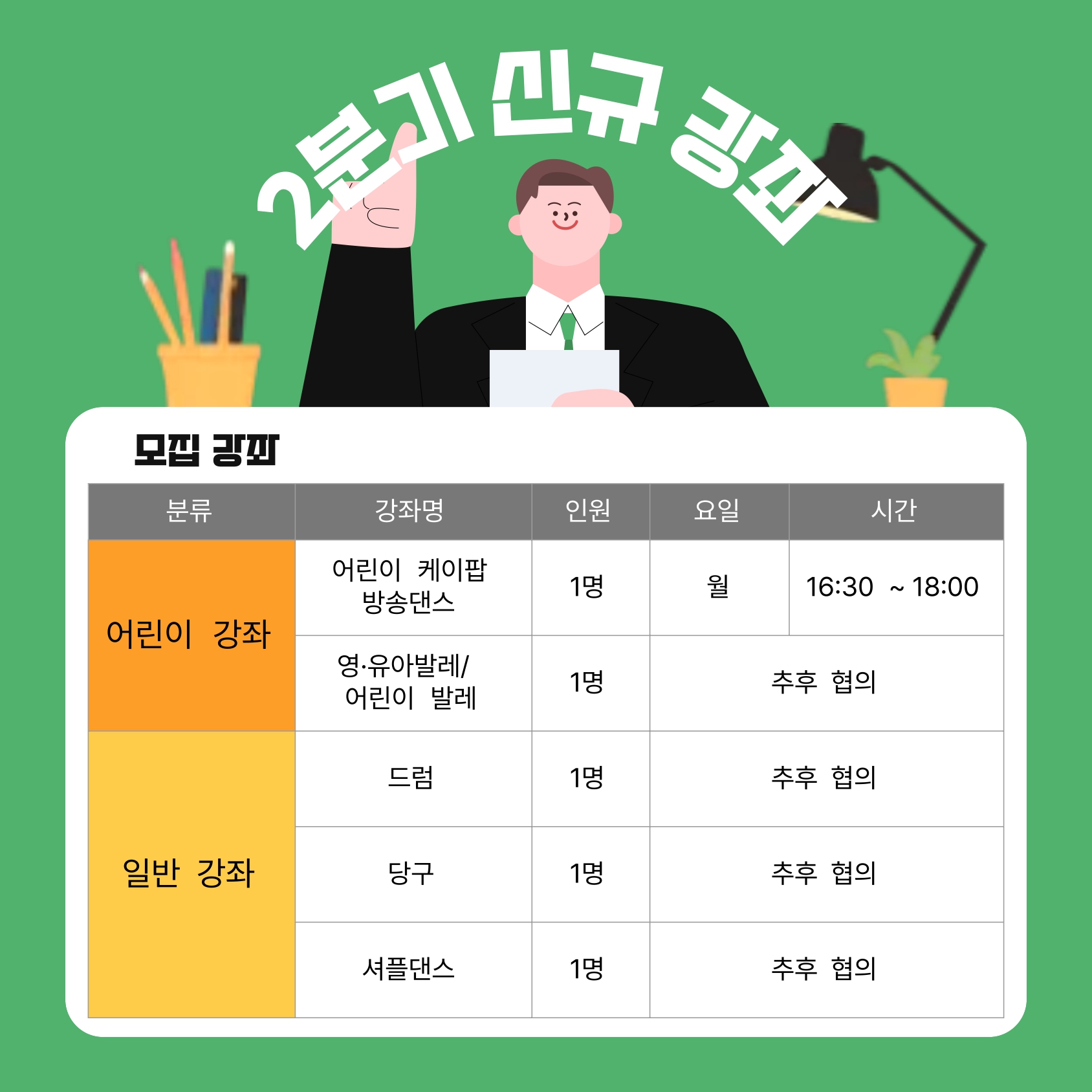 2) 일반강좌 : 드럼, 당구, 셔플댄스