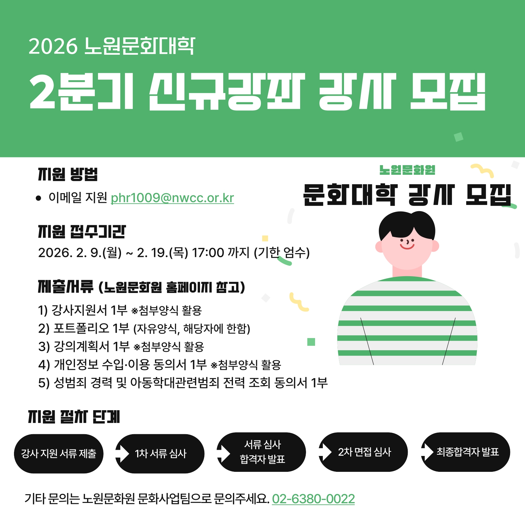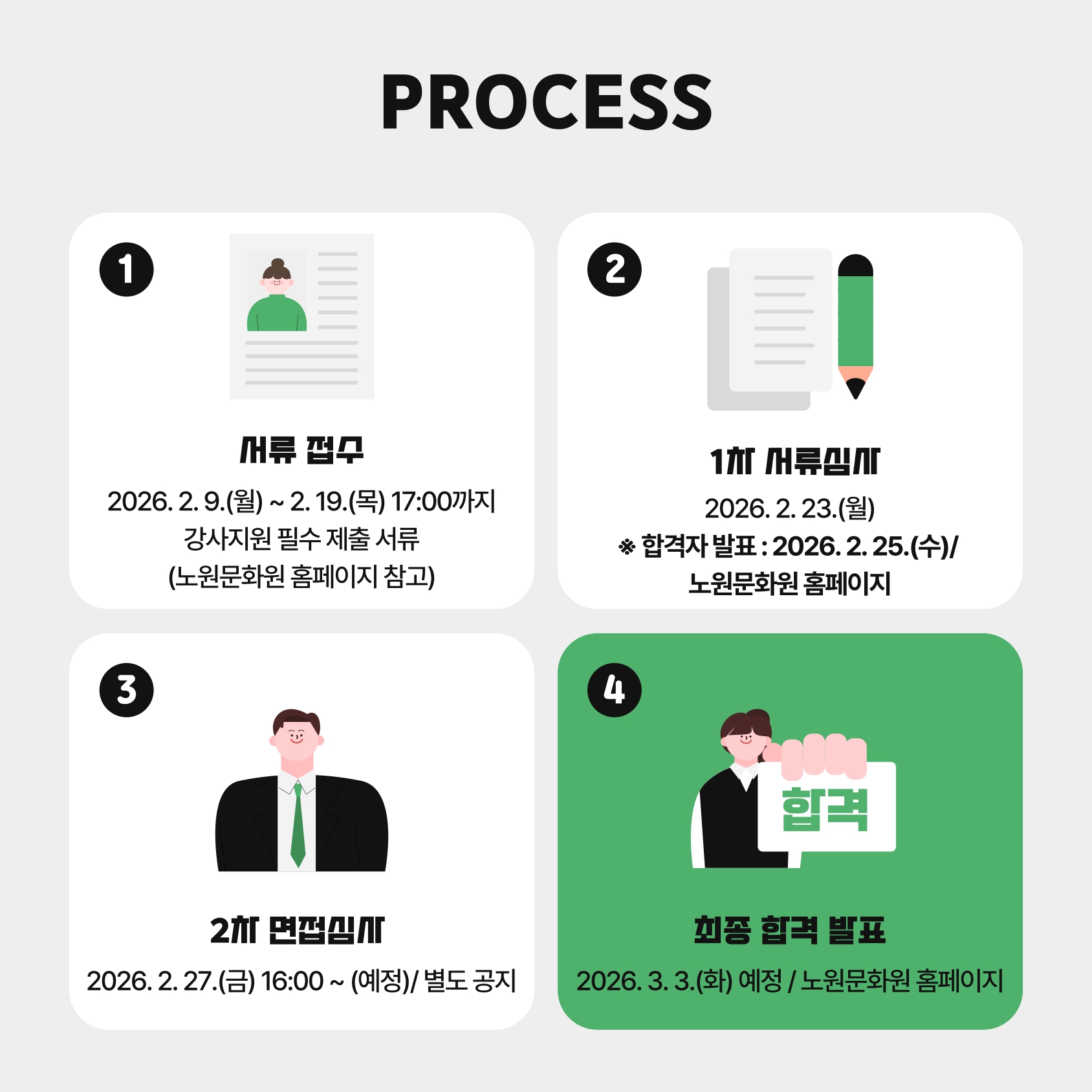 ※ 자세한 사항은 노원문화원 홈페이지(www.nwcc.or.kr) > 알림 마당 > 공지사항 > 채용공고 참고