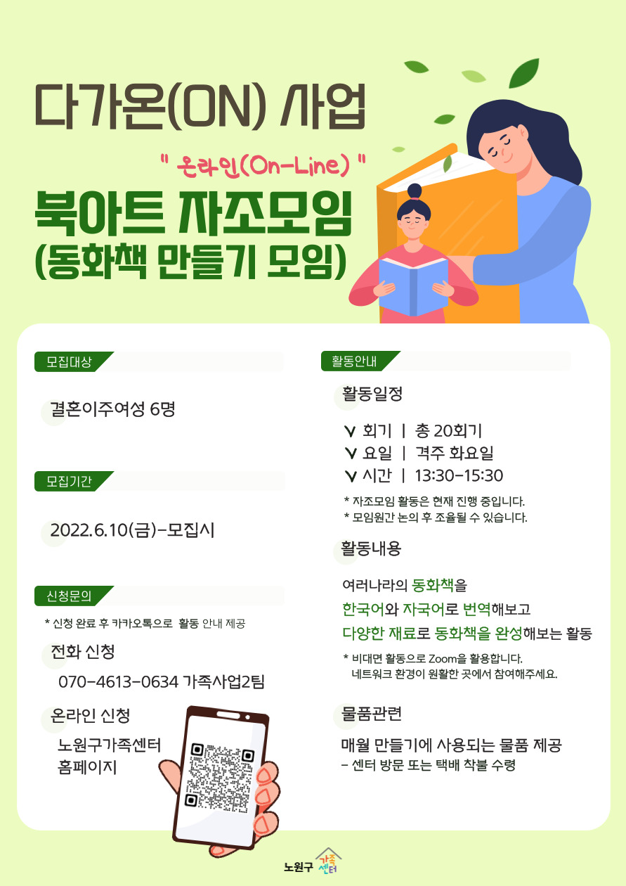[공릉동] [노원구가족센터] 다가온(On) 사업 결혼이주여성 동화책 만들기 자조모임(온라인) 안내