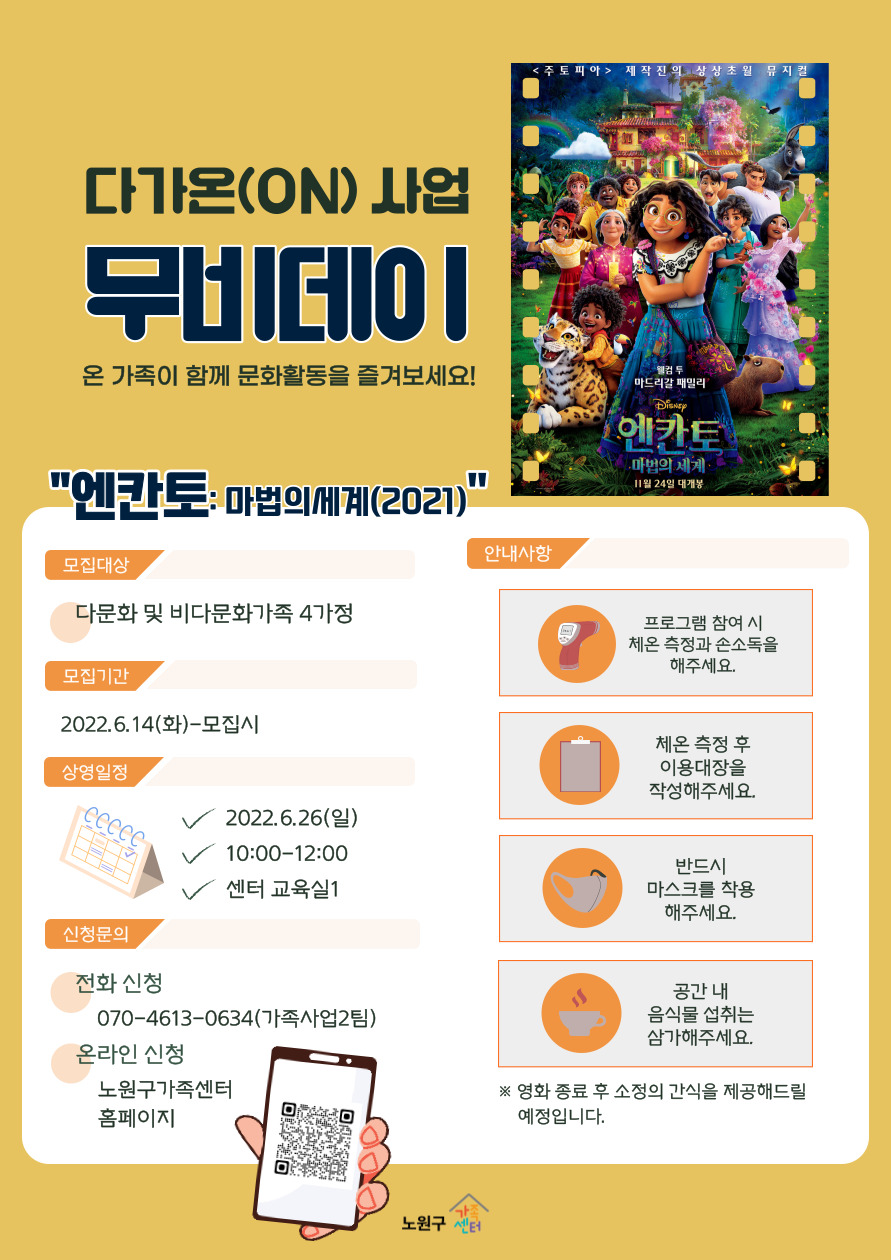 [노원구가족센터] 다가온(On) 사업 무비데이(엔칸토: 마법의세계, 2021)