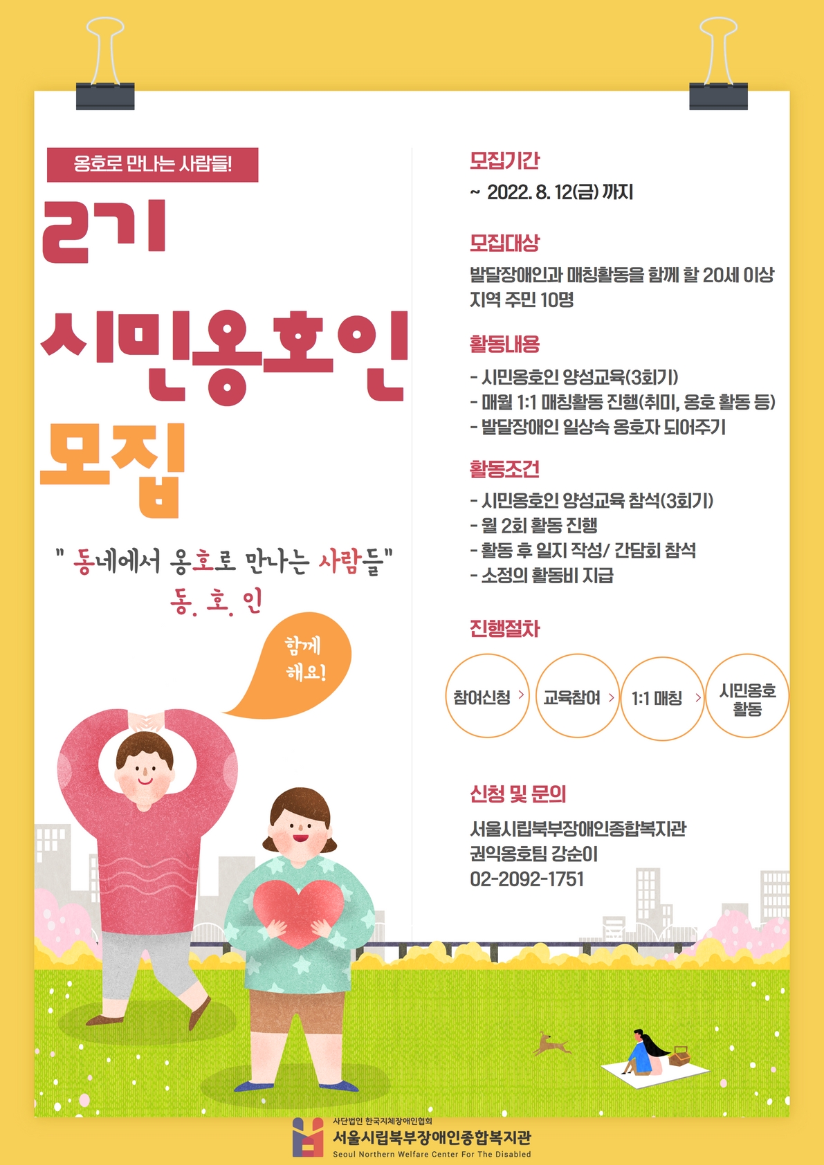 - 문의사항: 서울시립북부장애인종합복지관 권익옹호팀(02-2092-1751)