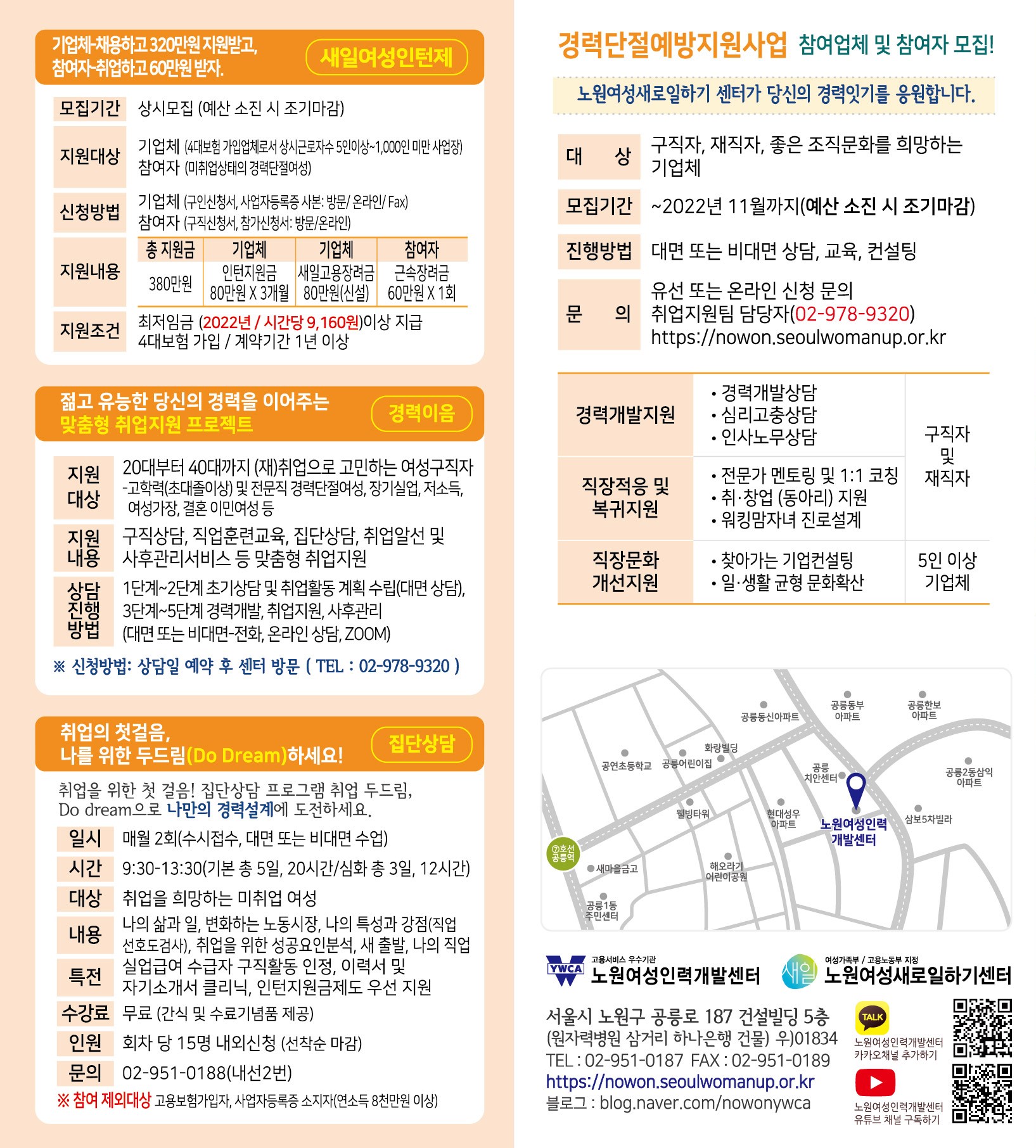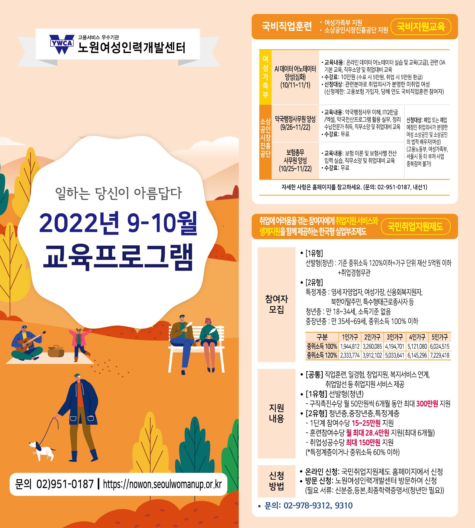 노원여성인력개발센터 - 9-10월 프로그램 수강생 모집