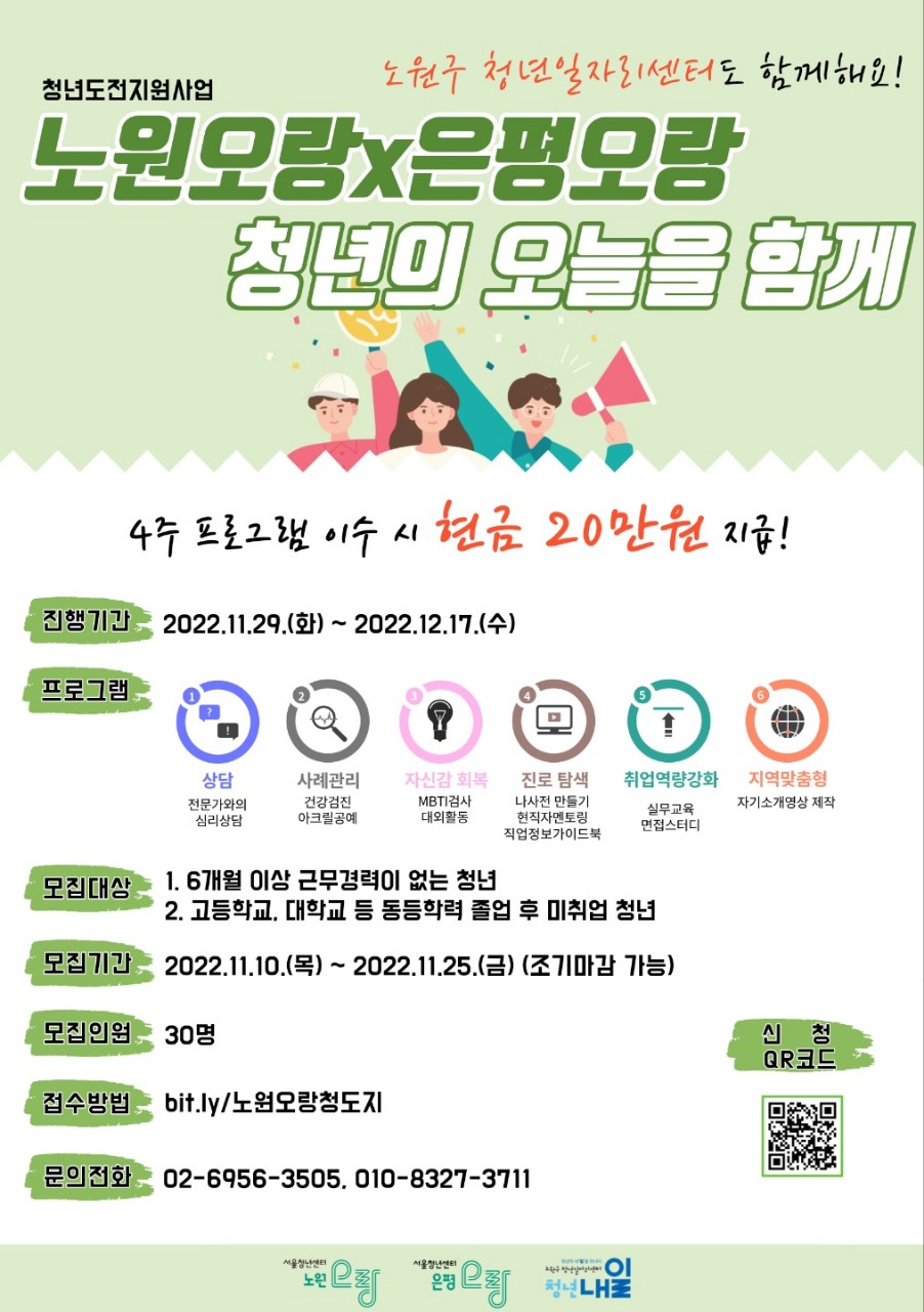 노원오랑 x 은평오랑 x 청년내일 <2022년 청년도전지원사업> 참여자 모집