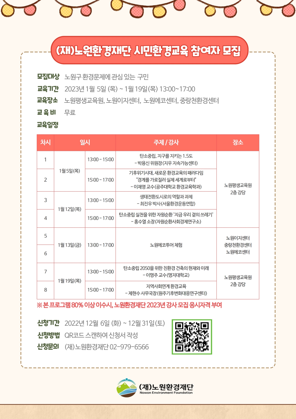 노원환경재단 시민환경교육 참여자 모집 (선착순 90명)