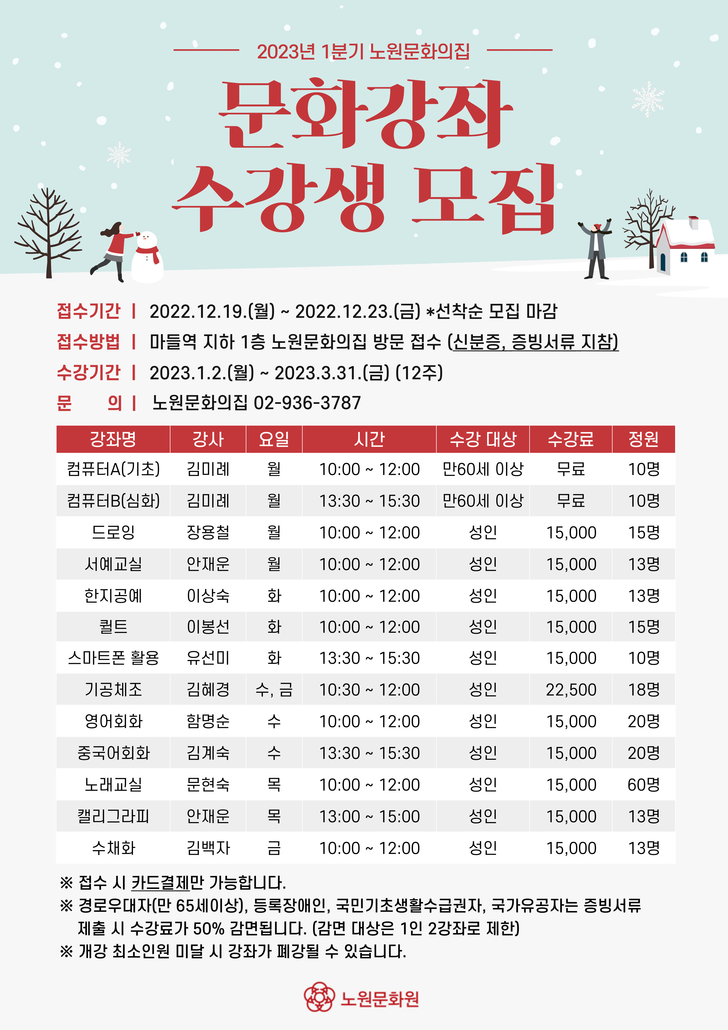 <2023년 1분기 노원문화의집 문화강좌 수강생 모집>