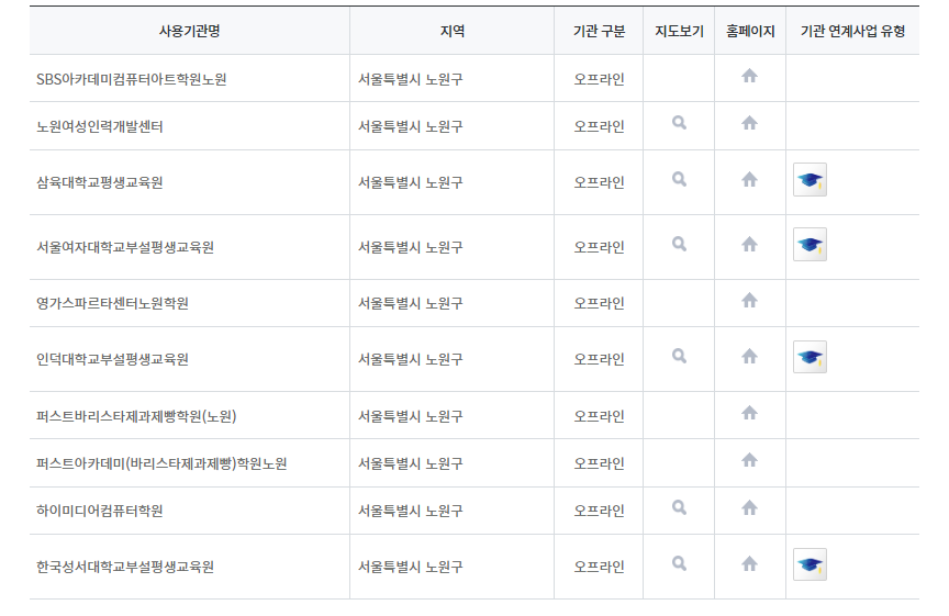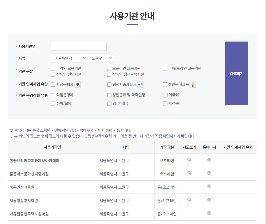 <노원구 내 바우처 사용기관>