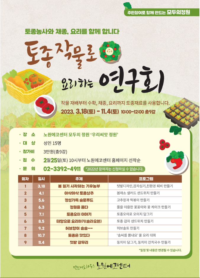 참가신청 2월25일(토) 10시부터 노원에코센터 홈페이지 선착순