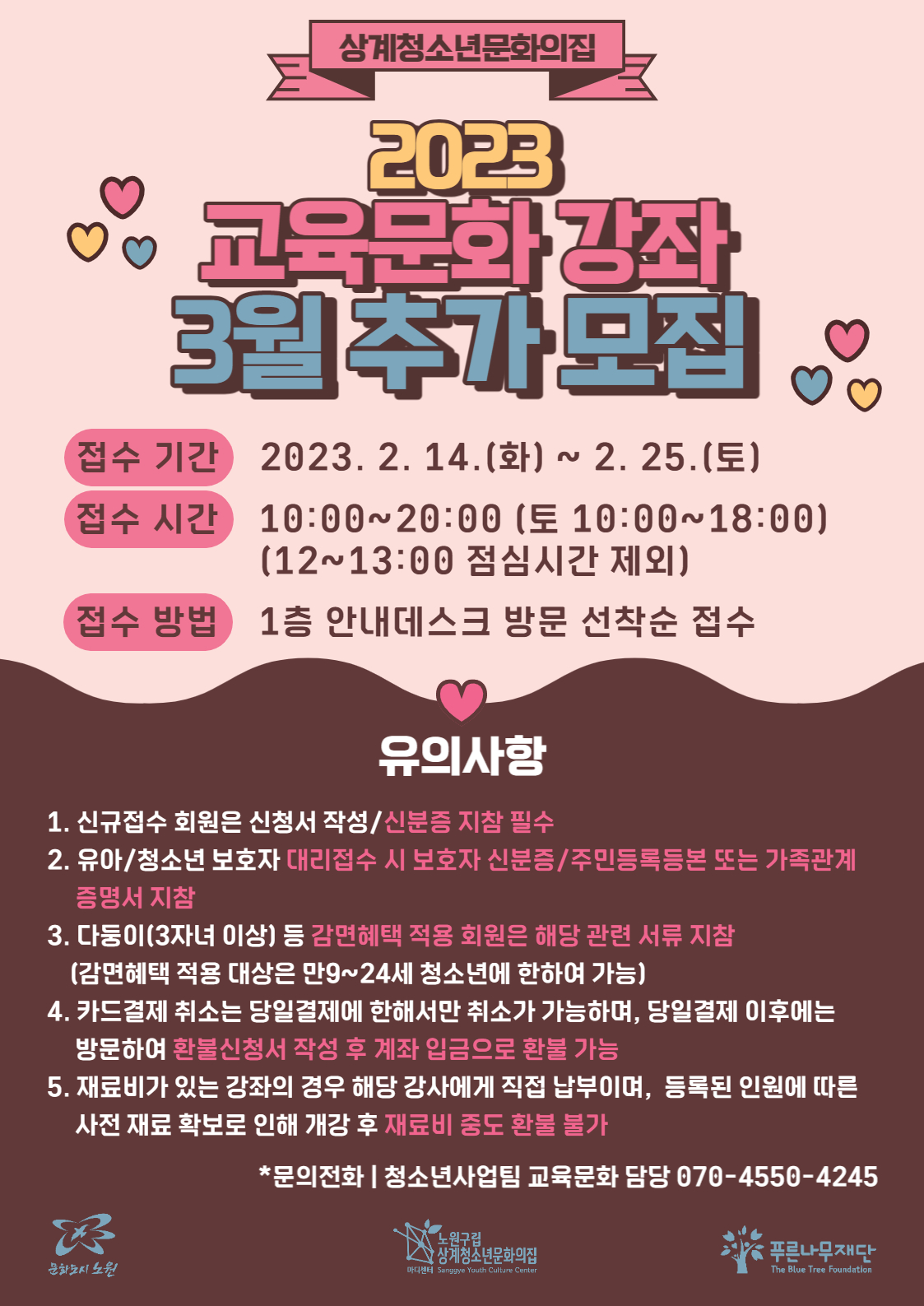 상계청소년문화의집 - 2023교육문화강좌 3월 추가 모집