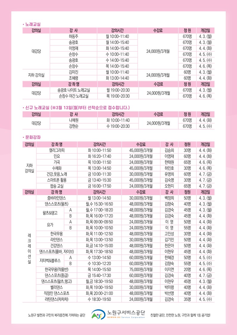 [노원구민의전당] 신규 개설 노래교실 공개강의 안내