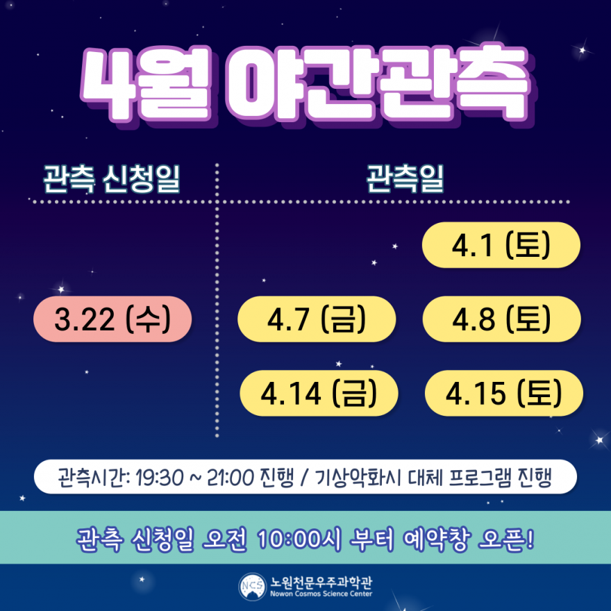 천문우주과학관 - 4월 야간관측 (모든 연령층 대상)