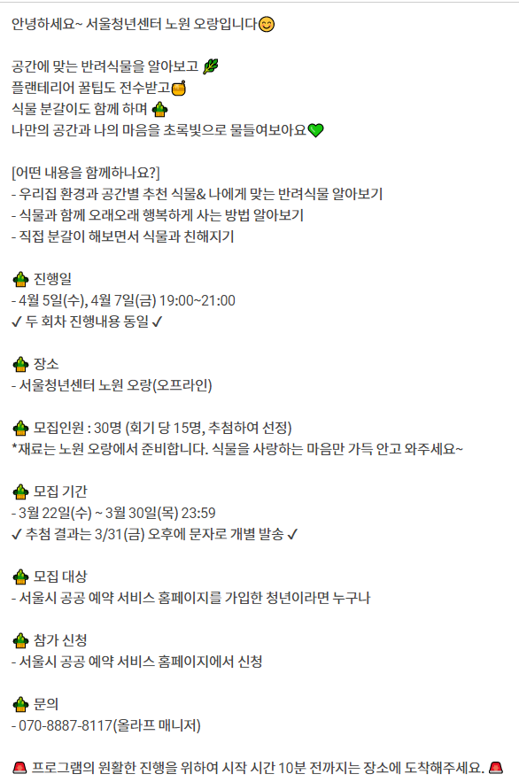 서울청년센터 [노원오랑] - 초보 식집사의 플랜테리어