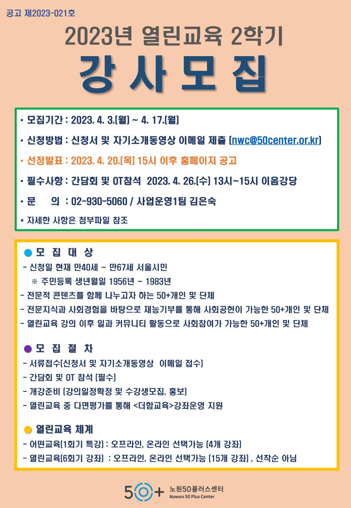 [상계동] 노원50플러스센터 - 2023년 1학기(5월) 프로그램 수강생 모집
